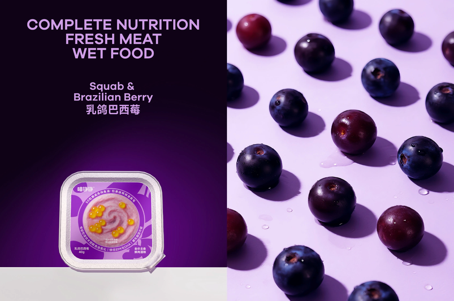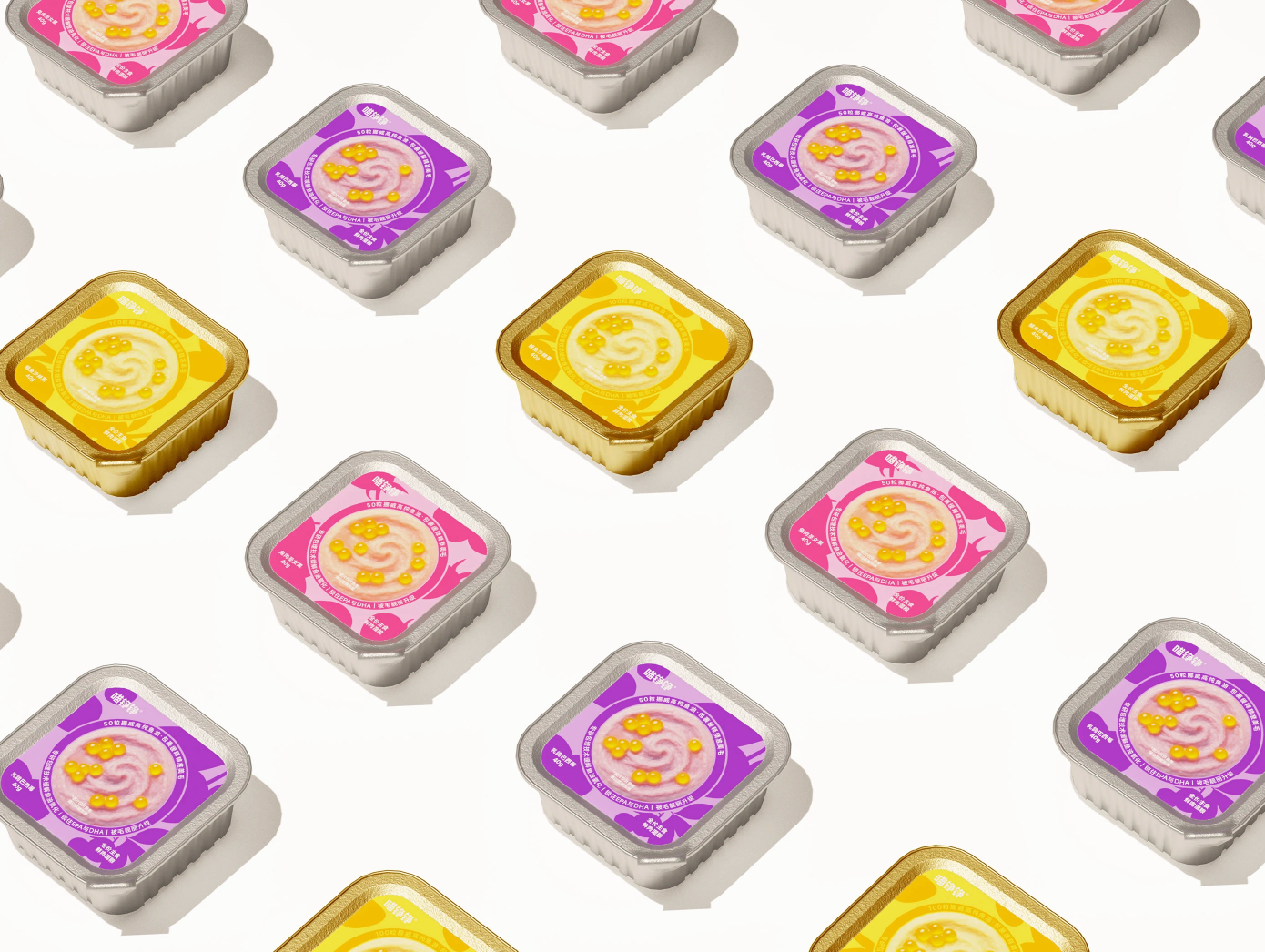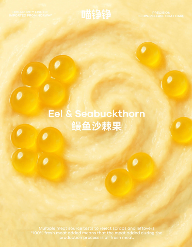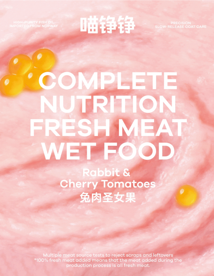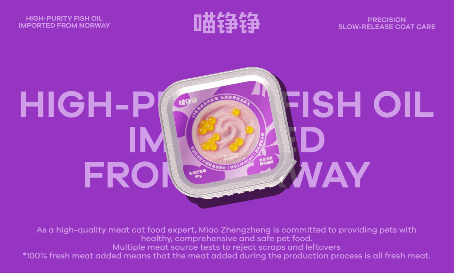As part of the OnWhite Design team, we redesigned the product packaging for Miao Zheng Zheng's new Fish Oil Bobo launch: 50 Fish Oil Capsules · Complete Fresh Meat Wet Food.
